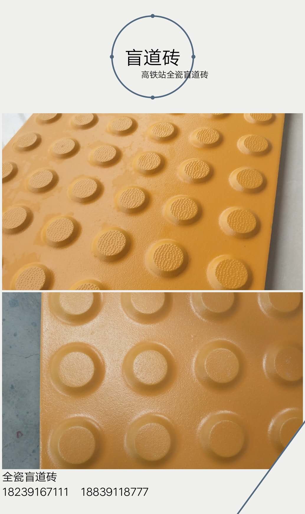 全瓷盲道磚、止步磚等產(chǎn)品具有規(guī)格齊全、色澤純正醒目、美觀大方、耐磨度高、抗低溫、抗沖擊等特點,廣泛適用于火車站、地鐵、體育場館、城建等公共場所。本產(chǎn)品已在北京西站、南站,鄭州西站擴(kuò)建工程廣泛使用。